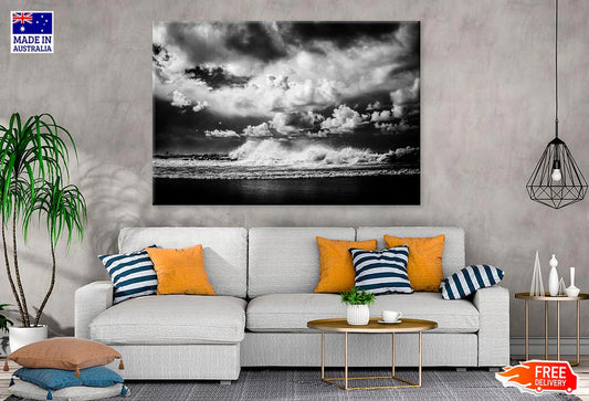 Beach On Waves & Cloudy Sky B&W 90x60cm Print 100% Australian Made