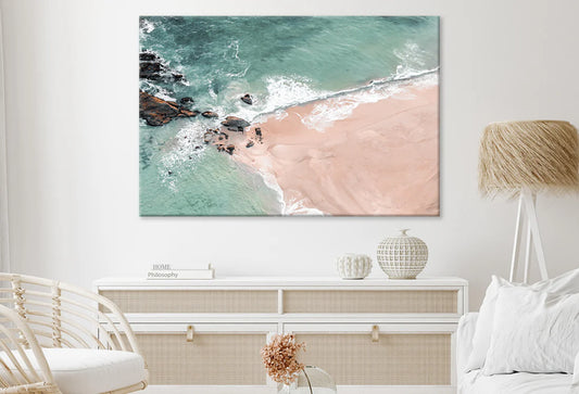 Beach Top View With Rocks Stunning Design 90x60cm Print 100% Australian Made