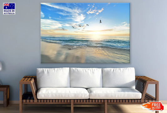 Birds Flying on Blue Sky with Sea View Photograph 90x60cm Print 100% Australian Made