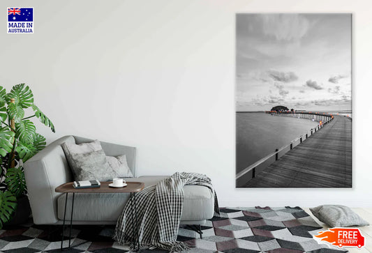 Wooden Pier Over Sea B&W View 90x60cm Print 100% Australian Made