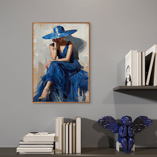 Woman in a Blue Hat And Dress with Diamond Painting Fashion Home Decor Premium Quality Poster Print Choose Your Sizes