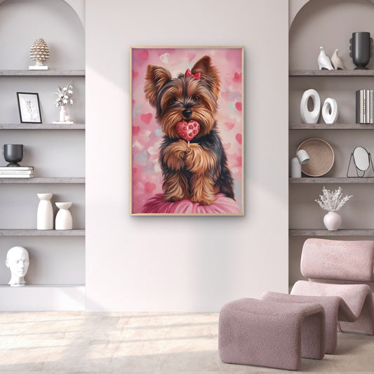 Adorable Yorkie with Heart-Shaped Lollipop Fashion Home Decor Premium Quality Poster Print Choose Your Sizes