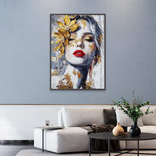 Modern Abstract Female Gold Red Floral Crown Woman Fashion Home Decor Premium Quality Poster Print Choose Your Sizes