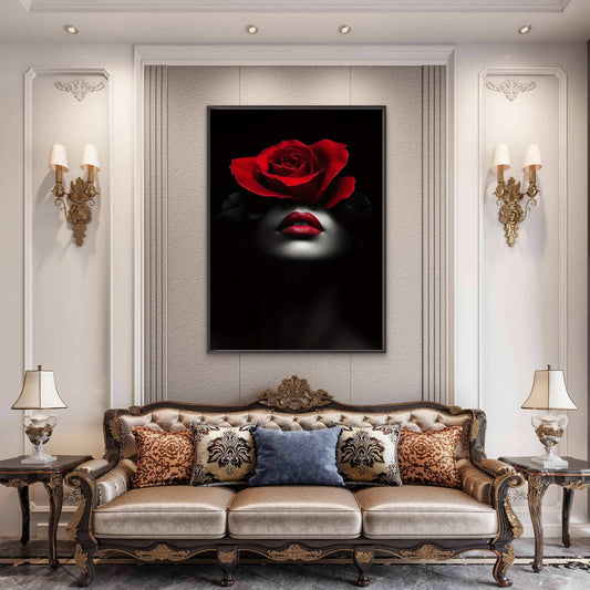 Elegant Woman with Red Rose and Lips Fashion Home Decor Premium Quality Poster Print Choose Your Sizes