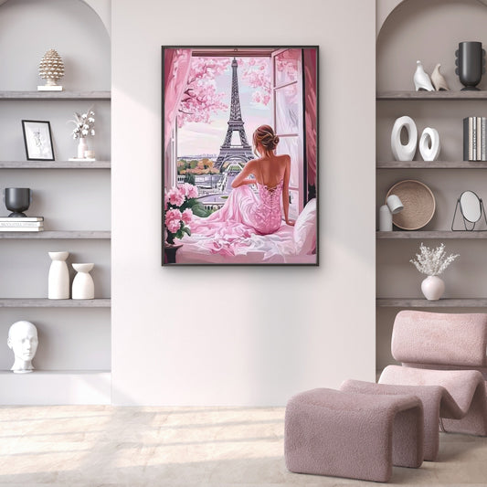 Minimalist Stylish Woman Paris Eiffel Tower Painting Fashion Home Decor Premium Quality Poster Print Choose Your Sizes