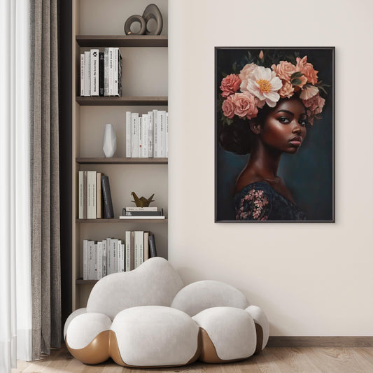 Vintage Modern Floral Crown Brown Hair Woman Fashion Home Decor Premium Quality Poster Print Choose Your Sizes