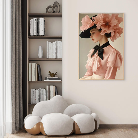 Vintage Soft Pink Floral Hat Elegant Woman Fashion Home Decor Premium Quality Poster Print Choose Your Sizes