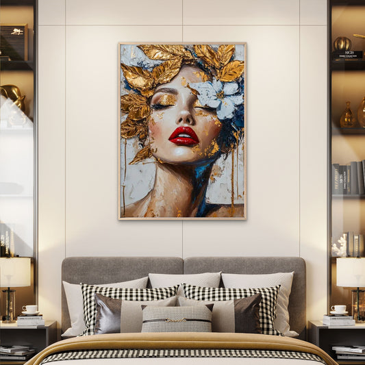 Vintage Modern Woman with Golden Leaf Headpiece and Floral Fashion Home Decor Premium Quality Poster Print Choose Your Sizes