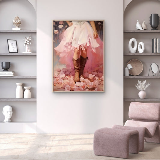 Soft Pastel Pink Floral Boots and Ruffled Skirt Fashion Home Decor Premium Quality Poster Print Choose Your Sizes