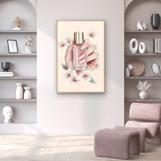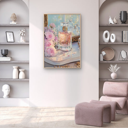 Soft Pastel Pink Perfume Bottle and Floral Woman Fashion Home Decor Premium Quality Poster Print Choose Your Sizes