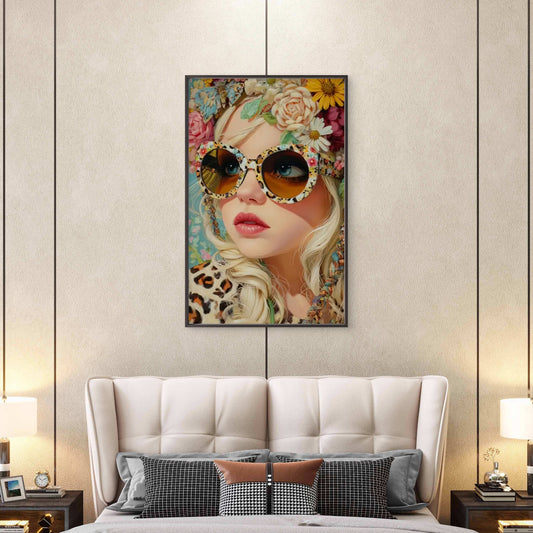 Blonde Woman with Floral Crown and Fashion Glasses Fashion Home Decor Premium Quality Poster Print Choose Your Sizes