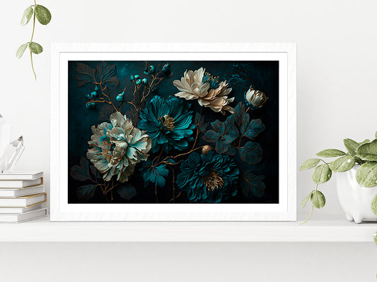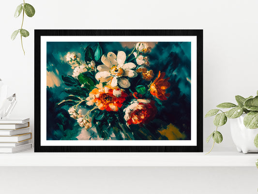 Painted Flowers Dark Moody Glass Framed Wall Art, Ready to Hang Quality Print