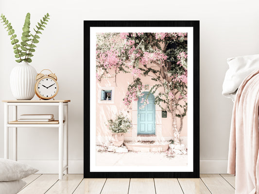 House & Flower Tree Faded Photograph Glass Framed Wall Art, Ready to Hang Quality Print