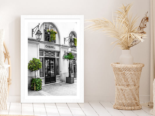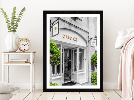 Fashion Store Front B&W Photograph Glass Framed Wall Art, Ready to Hang Quality Print