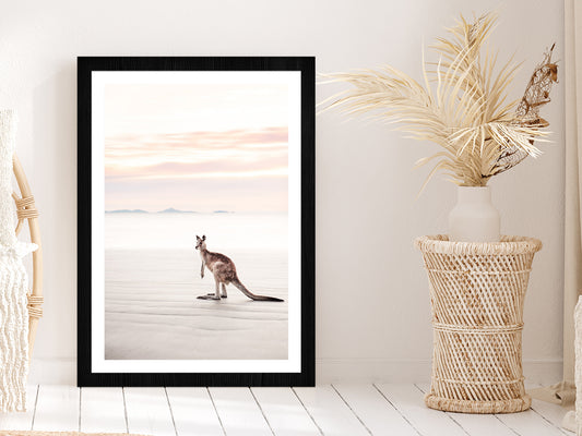 Kangaroo near Sea Faded Photograph Glass Framed Wall Art, Ready to Hang Quality Print