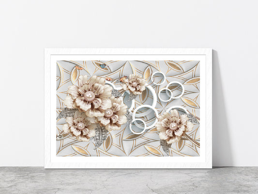 Golden Flower Abstract Design Glass Framed Wall Art, Ready to Hang Quality Print