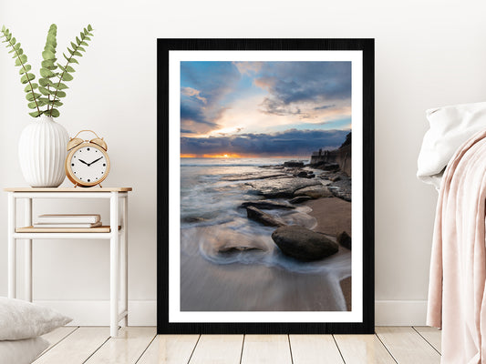 Sunrise View Of Rocky Coastline Glass Framed Wall Art, Ready to Hang Quality Print