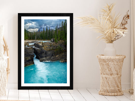 River Flows Down From Mountains Glass Framed Wall Art, Ready to Hang Quality Print