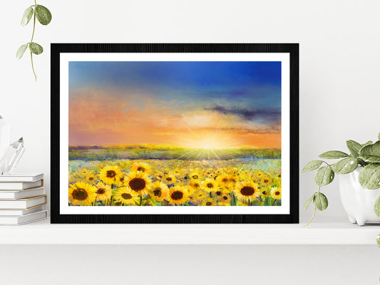 Rural Sunset Landscape With Golden Sunflower Glass Framed Wall Art, Ready to Hang Quality Print