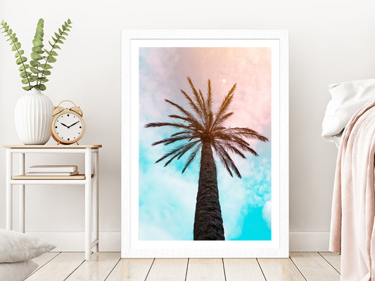 Palm Trees & Blue Pink Sky Scenery Photograph Glass Framed Wall Art, Ready to Hang Quality Print