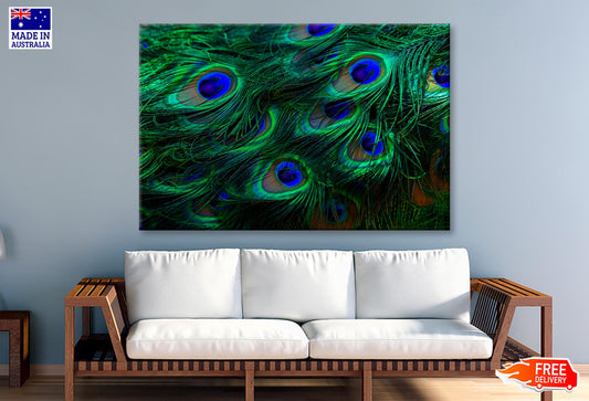 Beautiful Peacock's Feathers Closeup Wall Art Decor 100% Australian Made