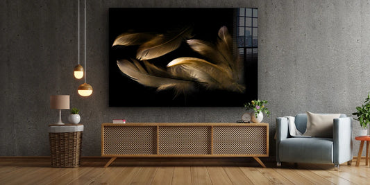Stylish Dark Feather Acrylic Glass Print Tempered Glass Wall Art 100% Made in Australia Ready to Hang