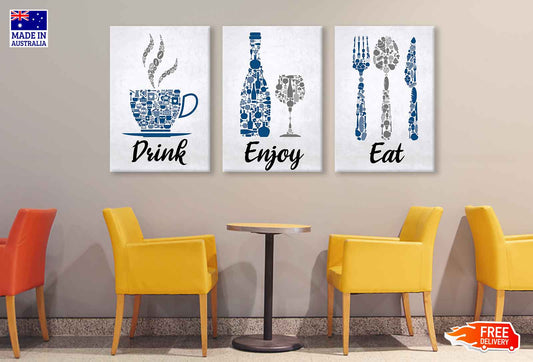 3 Set of Drink Eat Enjoy Vector Art High Quality Print 100% Australian Made Wall Canvas Ready to Hang