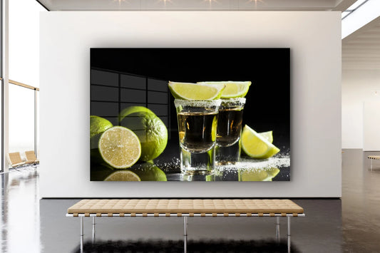 Tequila Shots & Lemons Print Tempered Glass Wall Art 100% Made in Australia Ready to Hang