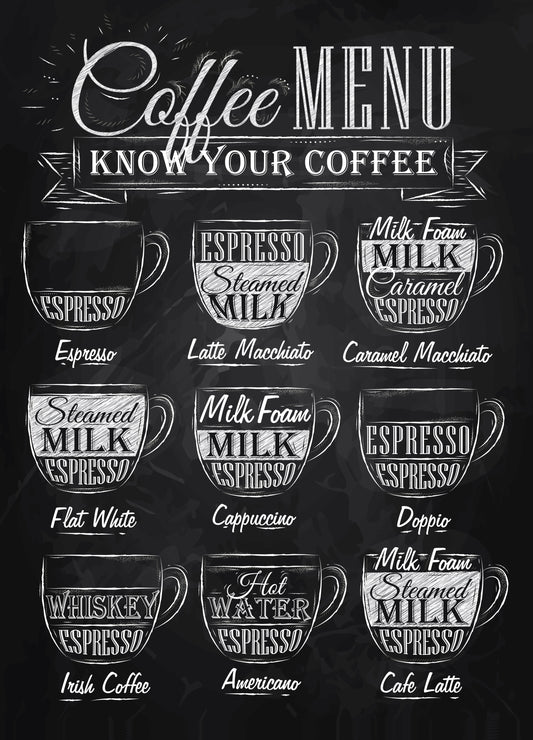 Coffee Menu Chalk Drawing Kitchen & Restaurant Print 100% Australian Made