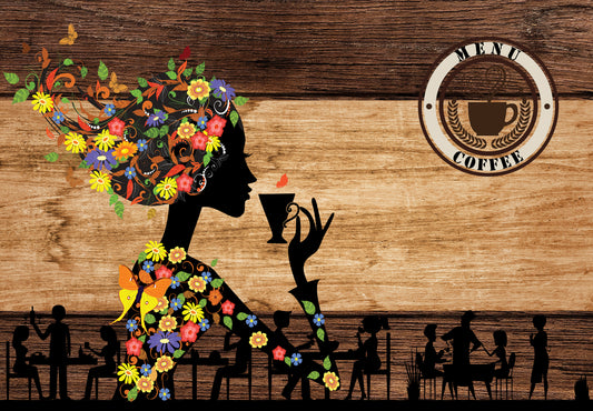 Women with Floral Headdress Cafe Wooden Wall Print 100% Australian Made