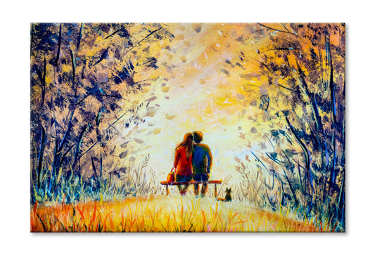 A Loving Couple & Cat Oil Painting Wall Art Limited Edition High Quality Print