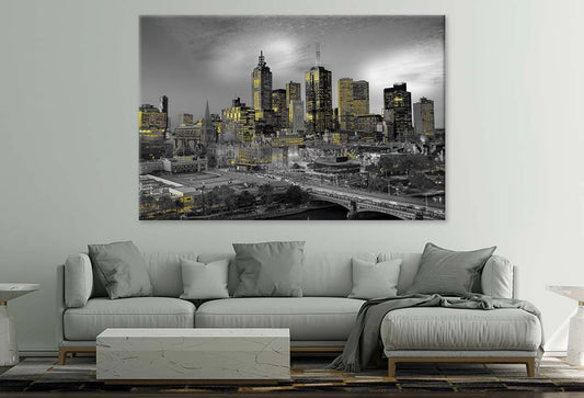 Melbourne Night With yellow lights B&W 90x60cm Print 100% Australian Made