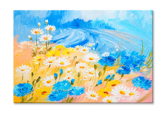 Abstract Illustration of Flowers, Daisies Oil Painting Wall Art Limited Edition High Quality Print