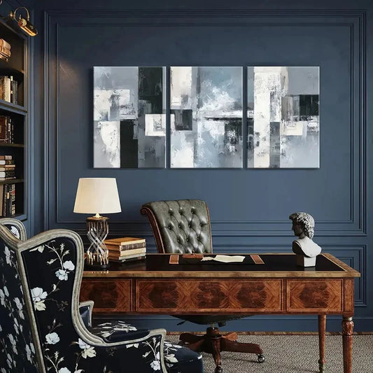 3pcs Abstract Art Geometric Design Monochrome Metal Print Ready to Hang Art