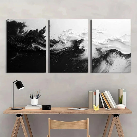 3pcs Black and White Abstract Metal Print Ready to Hang Art