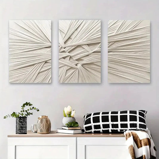 3pcs White & Beige Geometric Patterns Metal Print Ready to Hang Art