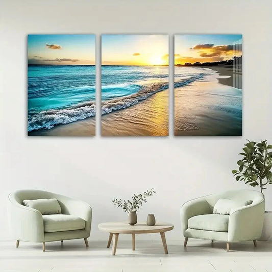 3pcs Nature Beach Scenery Sunset Metal Print Ready to Hang Art