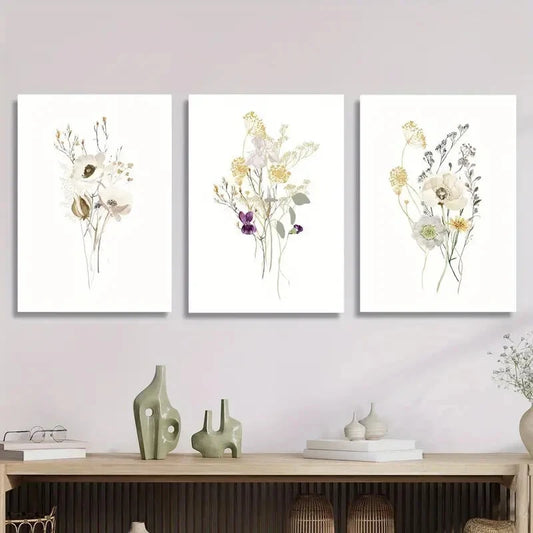 3pcs Green modern floral botanical Metal Print Ready to Hang Art