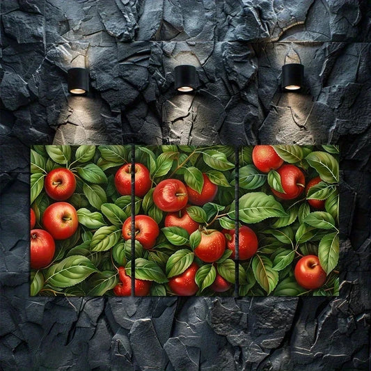 3pcs Charming Red Apple & Green Leaf Tree Metal Print Ready to Hang Art