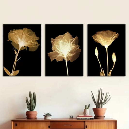 3pcs Vintage-Style Golden Floral Metal Print Ready to Hang Art