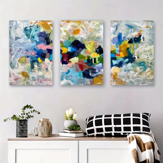 3pcs Abstract Colorful Brushstroke Metal Print Ready to Hang Art