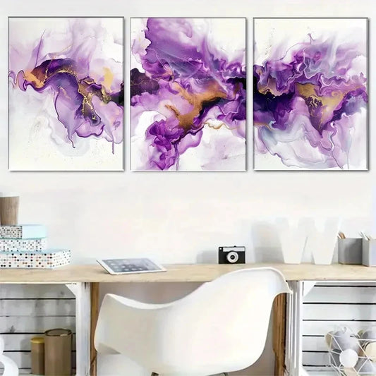3pcs Purple And Golden Abstract Painting Metal Print Ready to Hang Art