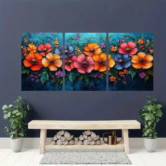 3pcs Vibrant Floral Colorful Daisy and Pansy Metal Print Ready to Hang Art