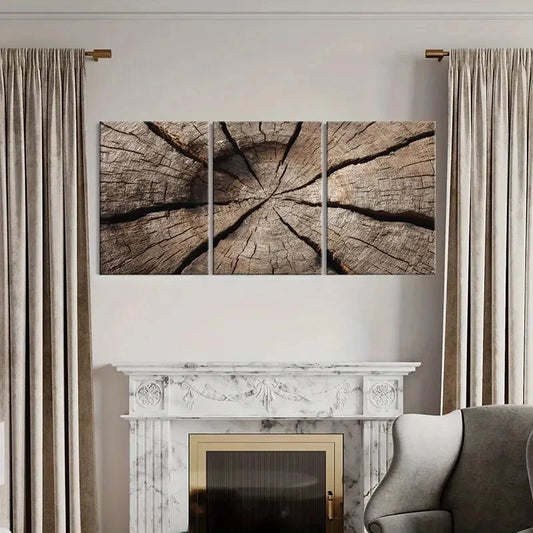 3pcs Wood Texture Natural Pattern Rustic Metal Print Ready to Hang Art