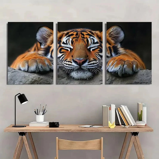 3pcs Beautiful Painting Animal Tiger Metal Print Ready to Hang Art