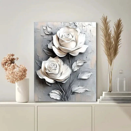 Elegant White Roses Gray Background 40x60cm Metal Print Ready to Hang