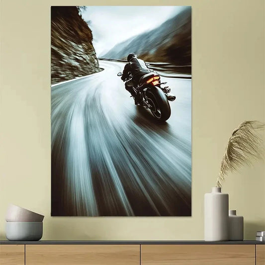 Motorcycle Racing Highway Action Art Poster 40x60cm Metal Print Ready to Hang