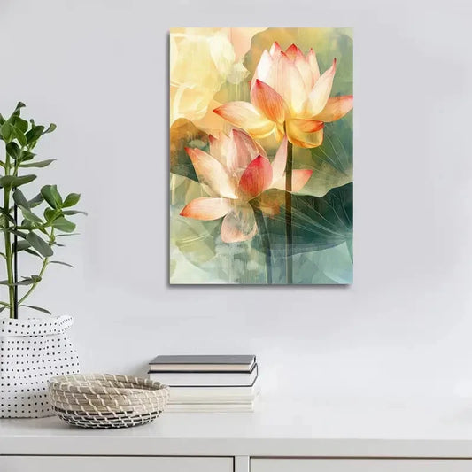 Beautiful Modern Abstract Lotus Flower Painting 40x60cm Metal Print Ready to Hang
