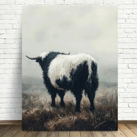 Beautiful Foggy Highland Cow Vintage Painting 40x60cm Metal Print Ready to Hang