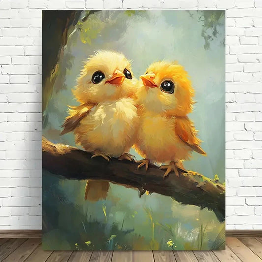 Beautiful Charming Yellow Chickens on Branch Painting 40x60cm Metal Print Ready to Hang
